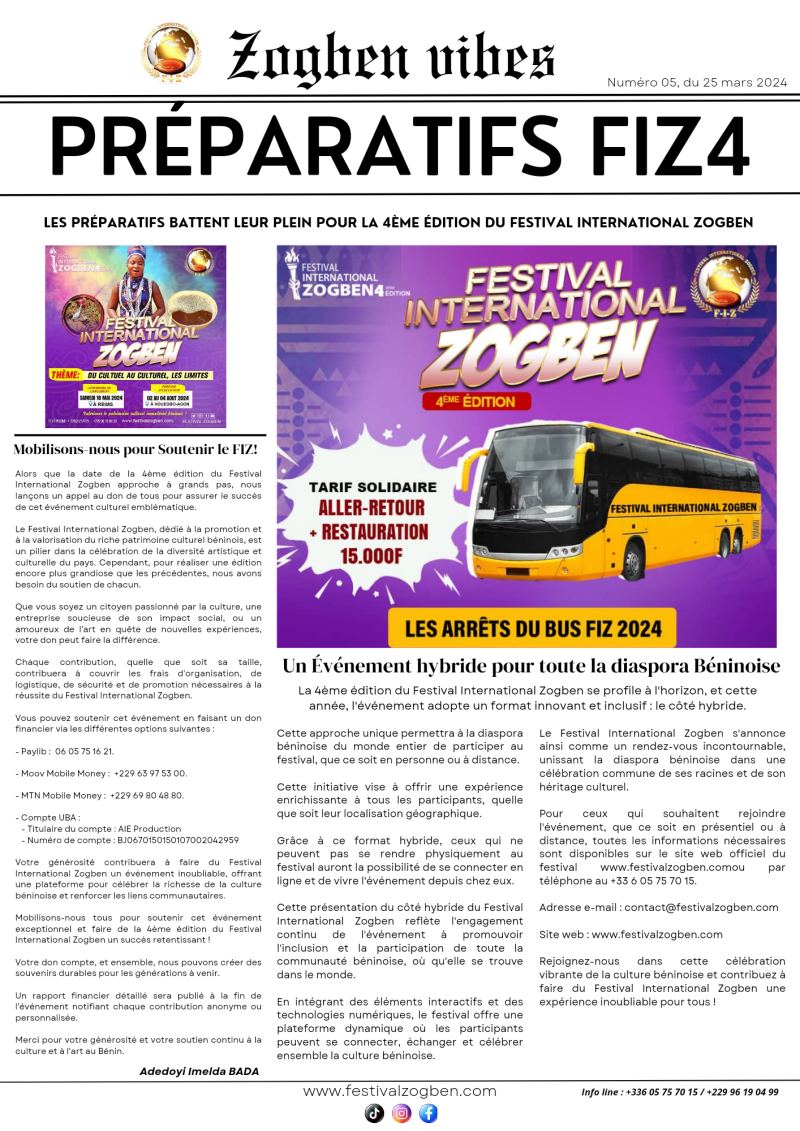 La 4ème édition du Festival International Zogben se profile à l'horizon, et cette année, l'événement adopte un format innovant et inclusif : le côté hybride.